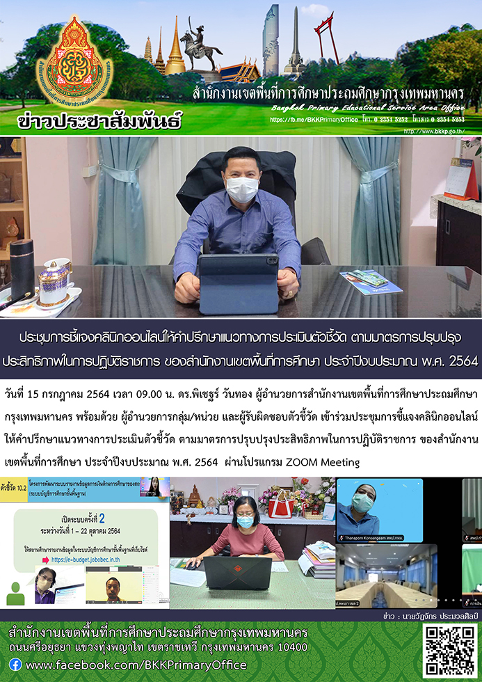 ประชุมการชี้แจงคลินิกออนไลน์ให้คำปรึกษาแนวทางการประเมินตัวชี้วัด ตามมาตรการปรับปรุงประสิทธิภาพฯ